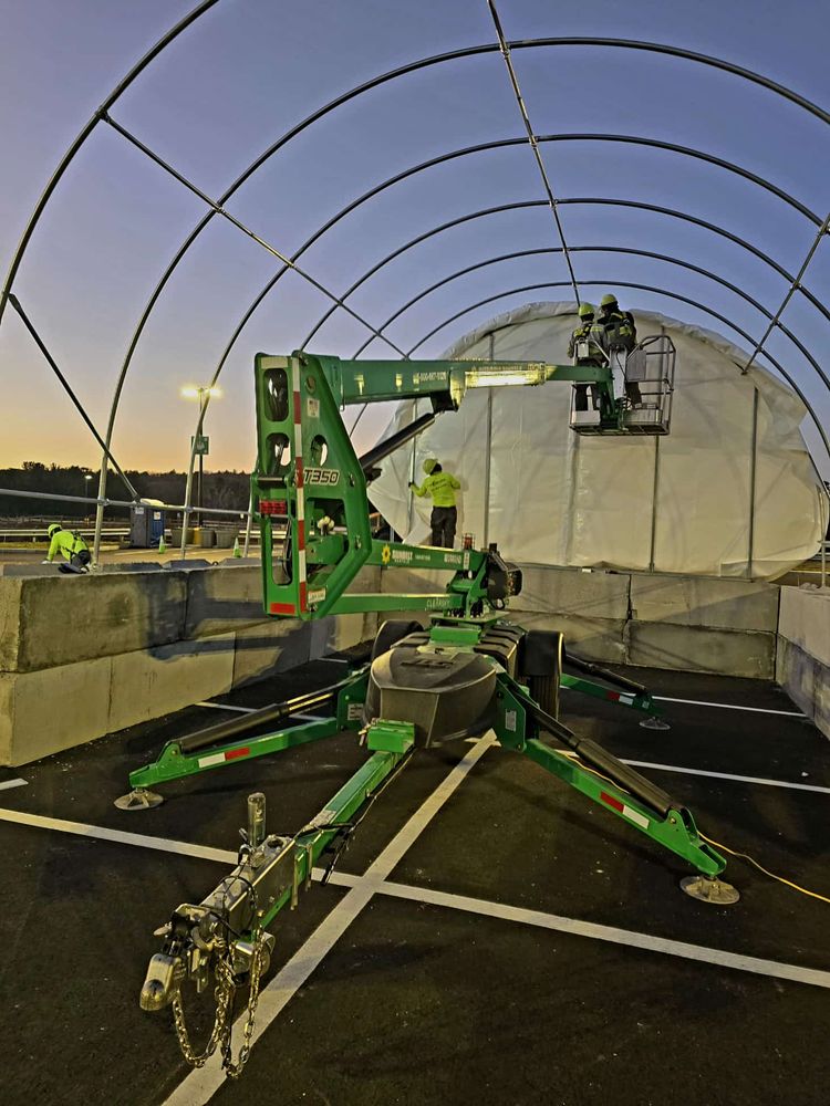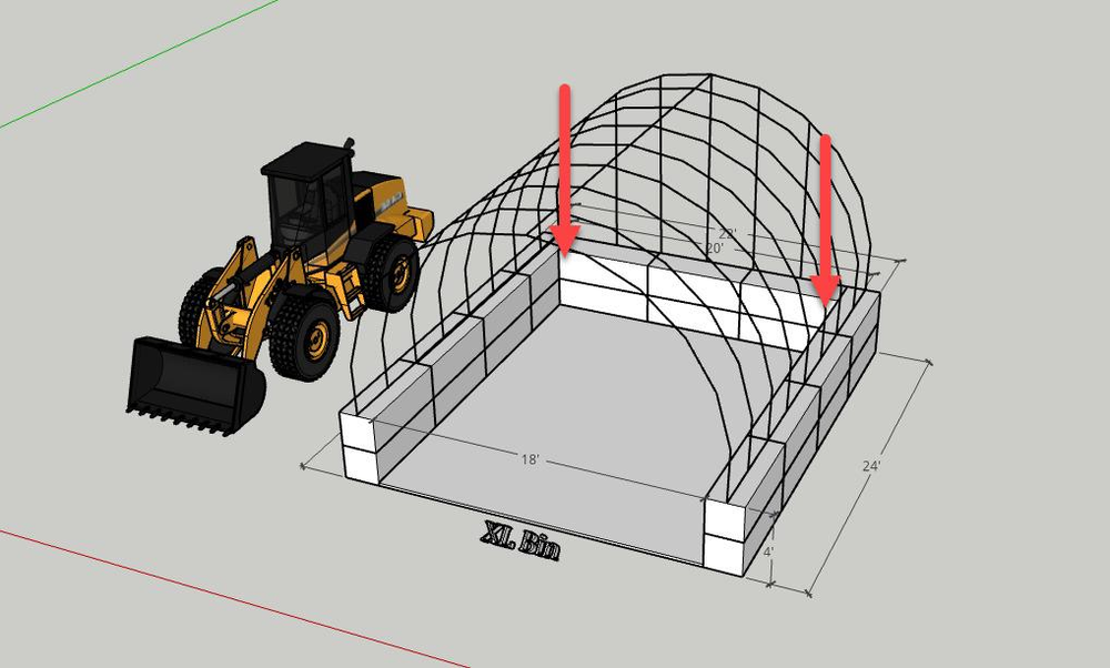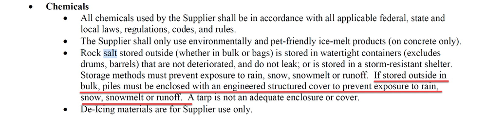 Bulk salt is stored using various methods. Generally, "Bin & Hoop" setups are placed on sites 500K FT2 or larger. This will allow CERES buckets to scoop and salt. These bins require hoops to shield the salt from rain and reduce incidents of tarps blowing off of the salt pile. This is in line with the written Amazon SOW. Additional precautions should be considered depending on the pitch and grade of the storage area. Operations should determine if erosion tubes/socks should be implemented to protect the site from run-off further. "Runoff" to significant material displacement; minor leaching is not considered "run-off" by industry standards.**East Coast Facilities standardized salt bin infrastructure, 18x24' with engineered hoop structure.
